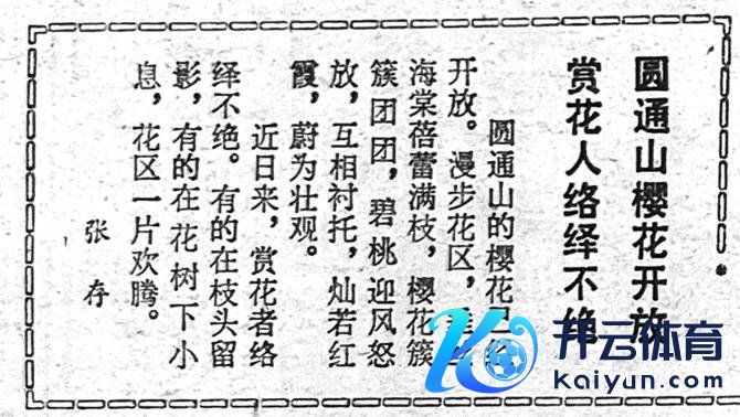 大开1986年3月1日的《春城晚报》,一则对于圆通山樱花的报谈,记载了阿谁年代的春日盛景。彼时的圆通山,樱花与海棠花交相照映,荒芜漫衍的花树沿着步谈舒展姿雅,粉白、粉红的花瓣随风轻舞,成为昆明东谈主春日里最朴素的欢悦。莫得复杂的玩法,莫得简易的打卡,东谈主们仅仅痴迷于花叶舒展的当然之好意思,赏完花便踏着春光离去。“看一目眩开”,即是阿谁年代最地谈的游玩需求。