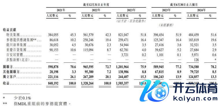 进一步分类,多点数智的前五大客户均为张文中旗下关联企业,包括物好意思集团、麦德龙供应链集团、银川新华集团、重庆百货集团、百安堵实体,收入占比诀别为51.6%、19.6%、3.5%、2.9%、0.6%。从这些数据来看,非关联的孤立客户在多点数智总收入中的占比为13.3%。