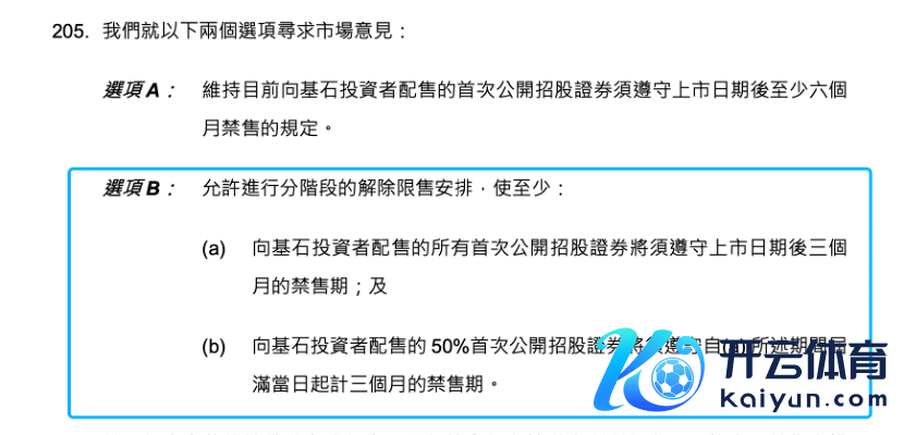 把柄《接洽文献》,港交场地谈判是否允许基石投资者联系证券“分阶段解禁”,当中50%的联系证券可在上市后三个月后湮灭禁售遏抑,其余的联系证券则在上市后六个月后透顶解禁。
