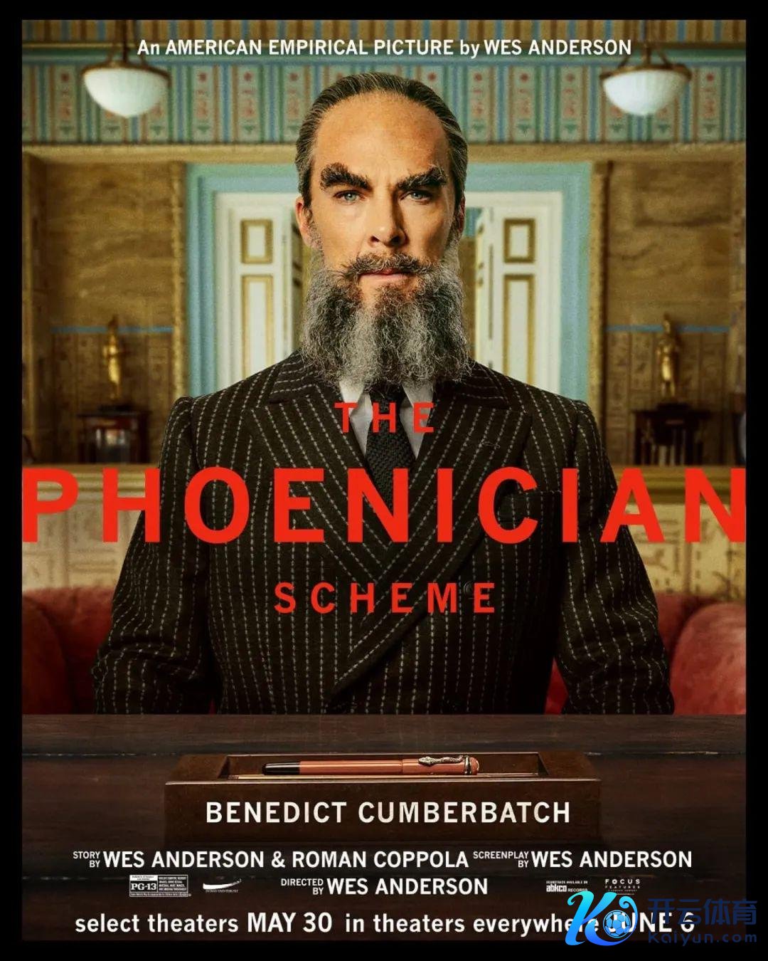 Benedict Cumberbatch在韦斯·安德森电影新作《腓尼基推敲》中的海报,眼前摆放了一支万宝龙专属定制的特别款书写用具