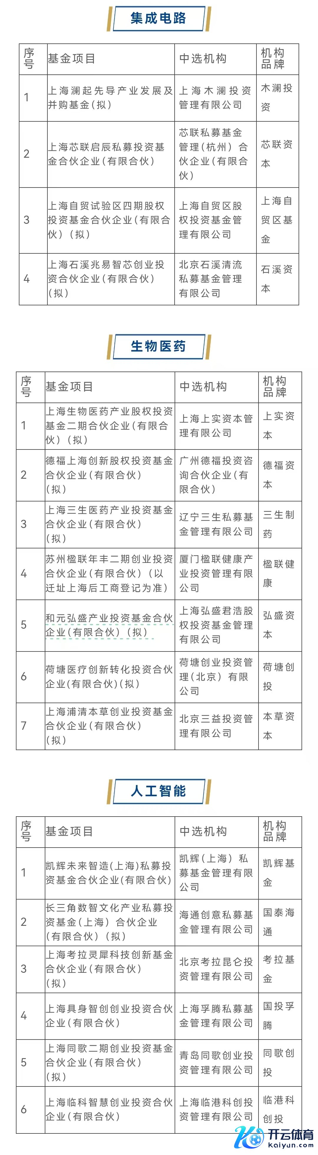 上海三大先导产业母基金第三批子基金彩选收尾公示上海三大先导产业母基金第三批子基金彩选收尾公示