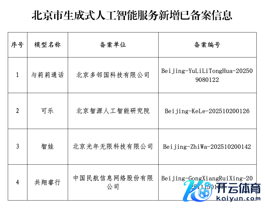 收尾12月31日,北京新增4款已完成备案的生成式东说念主工智能作事收尾12月31日,北京新增4款已完成备案的生成式东说念主工智能作事
