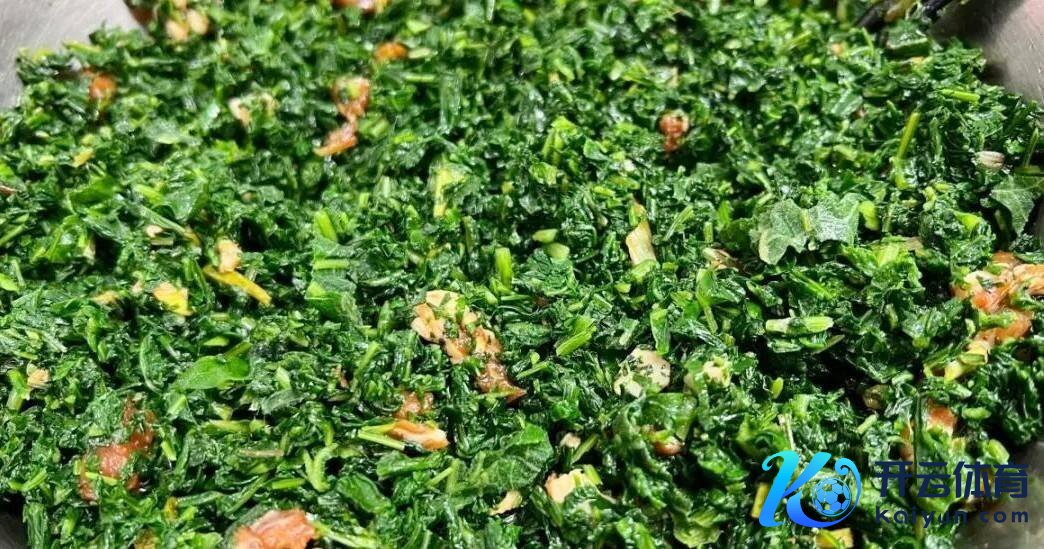 第二步:将苦菜摘洗干净,锅中烧滚水,加入一丝盐和几滴食用油(这样焯出来的苦菜神志更绿),放入苦菜焯水1-2分钟。捞出后立即放入凉水中过凉,这样能保持苦菜的翠绿色和脆嫩口感。然后用手挤干水分,这一步很紧迫,水分挤得越干,包子的馅料越好包,也顽固易破皮。挤干水分的苦菜放到案板上切成碎末,备用。